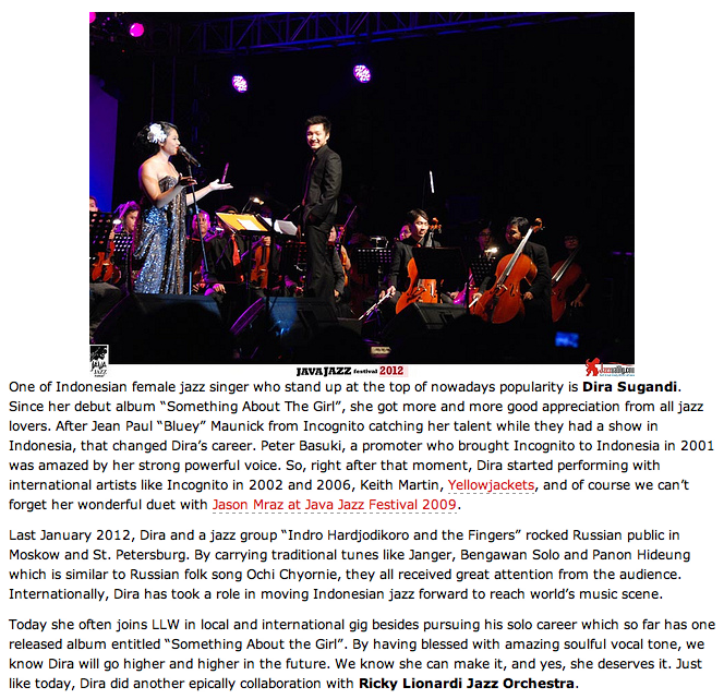 Jazzuality.com review for ‘Java Jazz 2012 : Tribute To Lady Jazz – Dira Sugandi and Ricky Lionardi Jazz Orchestra’